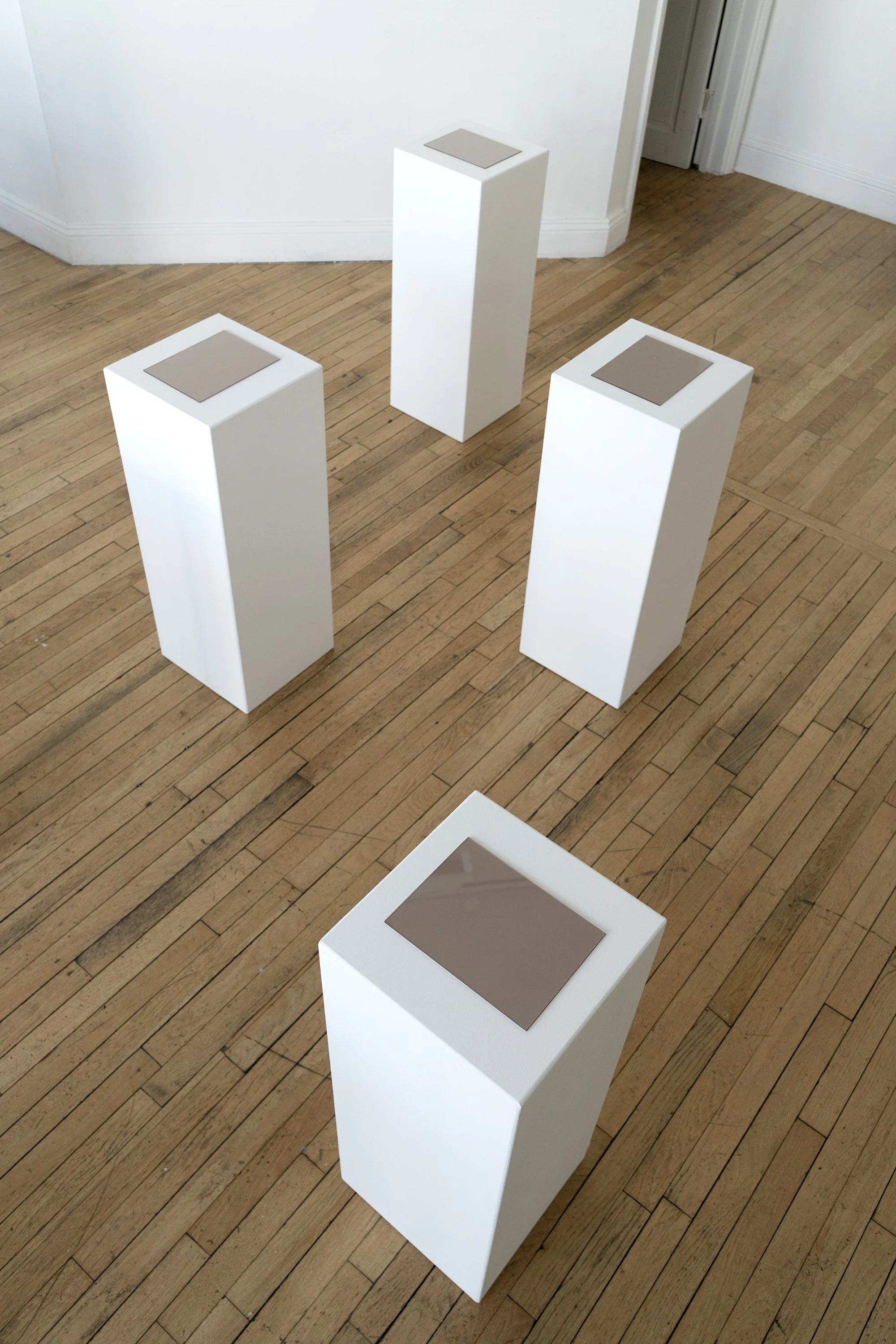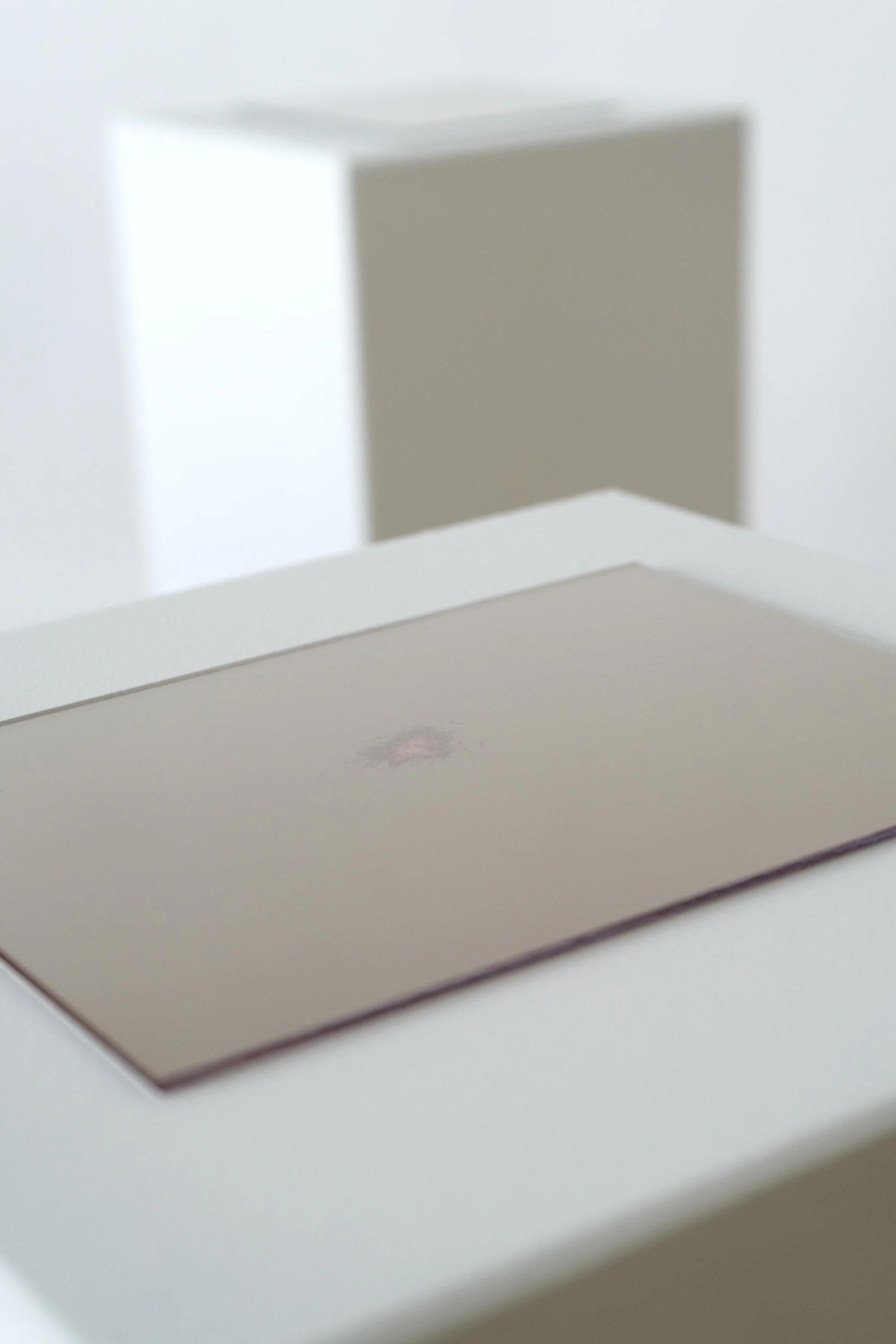 A cluster of upward-facing photograms hold the shadow remnants of mushrooms. These un-fixed images will eventually fade from existence, mimicking the cyclical nature of the world